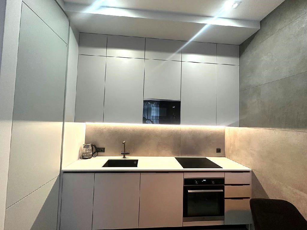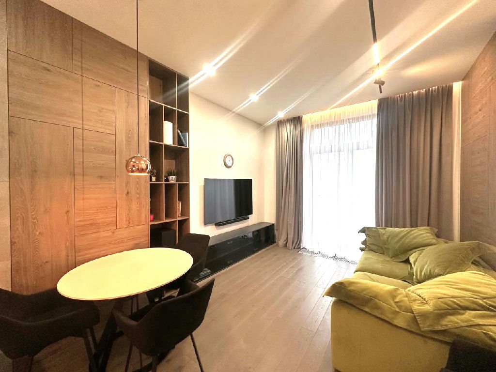 Элегантное и удобное планировочное решение гостиная кухня 18 кв.м, изолированная спальня 15 кв.м, просторный санузел, функциональный холл-прихожая с встроенными шкафами.