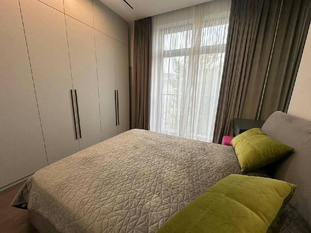 Комфортная, тихая квартира с отделкой в современном сдержанном стиле. Полностью меблирована и оборудована, панорамное остекление и виды на зеленый двор-сквер.